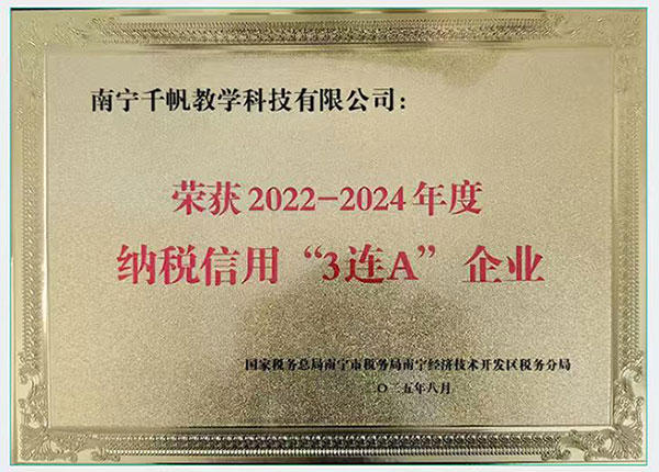 南寧千帆教學科技有限公司榮獲2022-2024年度納稅信用“3連A”企業(yè)。